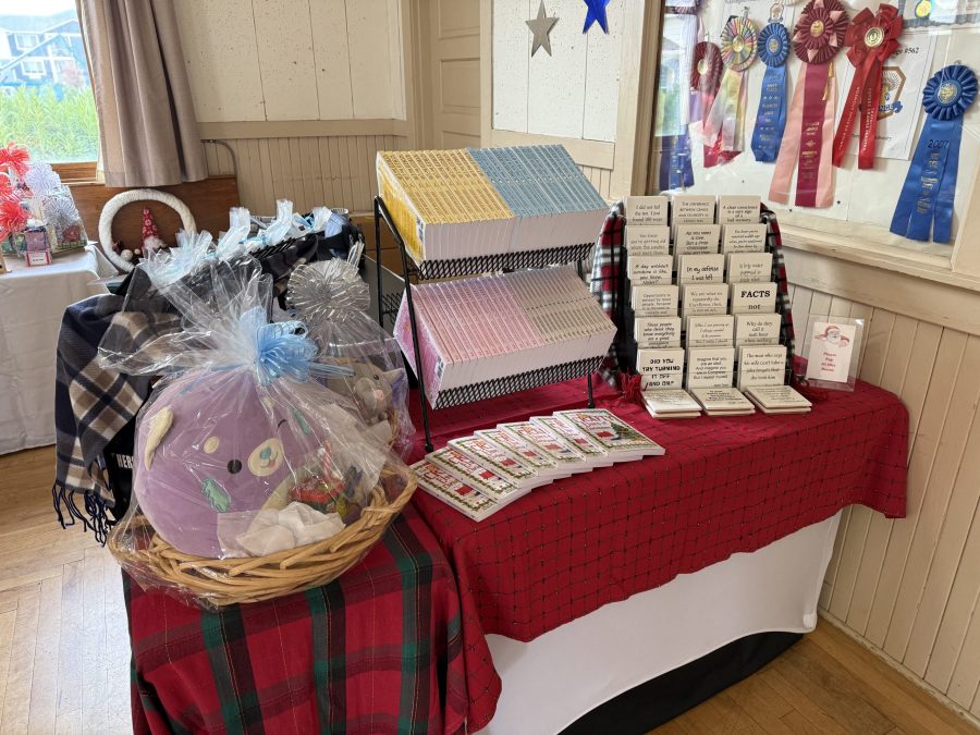 For several years, Judith has had a booth at a few local bazaars as an outlet for her papercrafts and books. Jerry usually puts one or two items in from his hobbies too. Their favorite is the Holiday Faire in early November that is hosted by The Kinton Grange, located just south of Beaverton, OR. The event runs for two days, and is very popular.